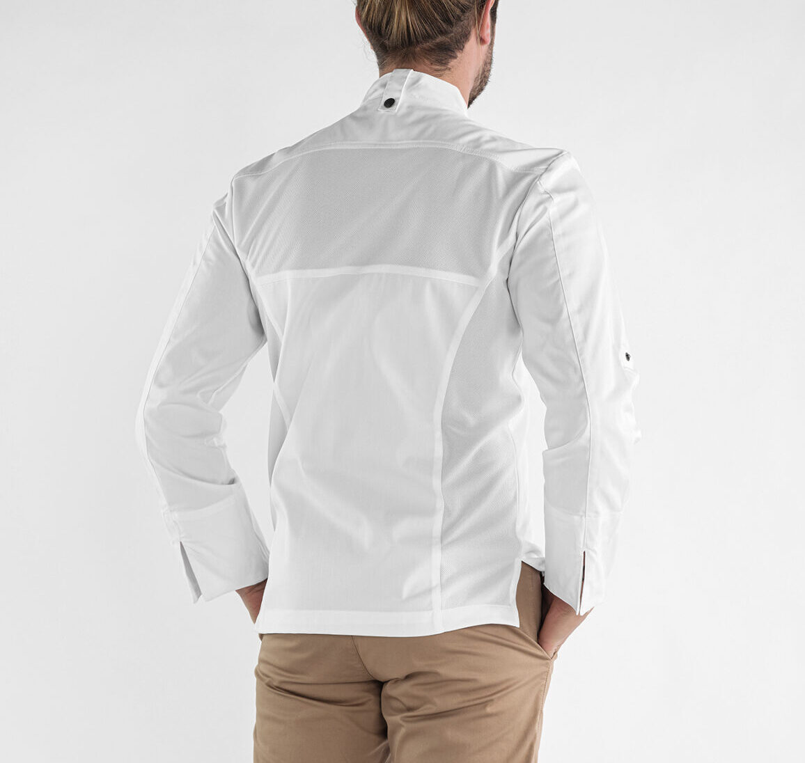 Malha respirável nas laterais e vista das costas.